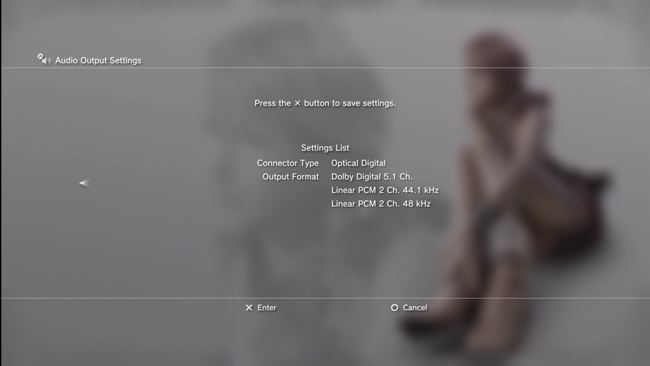 Next you will be prompted to set up the Audio Output Settings and then click X Enter. |
