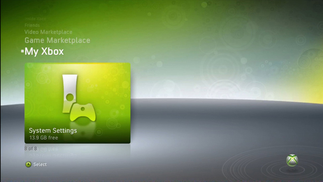 First, turn on your Xbox 360 and navigate to the My Xbox menu. |