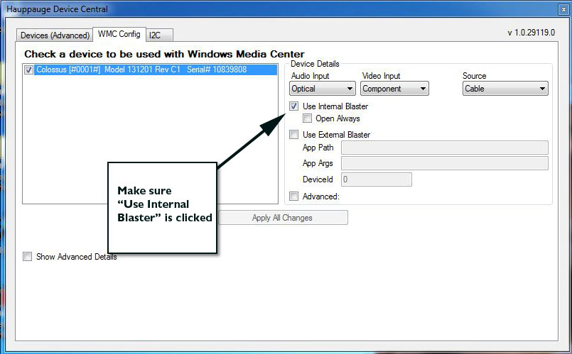 Make sure "Use internal blaster" is selected